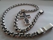 Якорная мужская цепь с крестом нательным православным из серебра